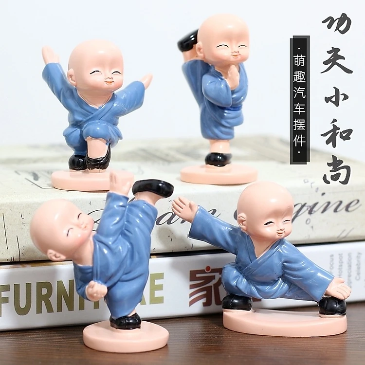 Combo 4 Tượng Chú Tiểu Đánh Võ Dễ Thương Trang Trí Xe Hơi, Bàn Làm Việc, Bonsai PaKaSa