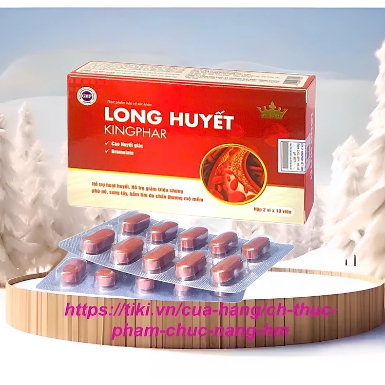 Viên uống Long huyết Kingphar, hộp 20 viên, giúp hoạt huyết, giảm bầm tím, phù nề, do chấn thương mô mềm