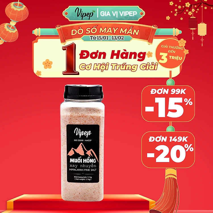 Muối Hồng Himalaya Xay Nhuyễn Vipep Hũ Nhựa 1.1kg - Gia vị Vipep