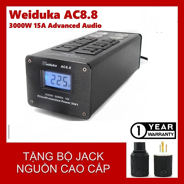 QUÀ TẶNG KÈM - BỘ LỌC NGUỒN ĐIỆN SẠCH CHỐNG NHI.ỄU AC8.8 CHUYÊN DÙNG CHO DÀN ÂM THANH HI-END CÔNG SUẤT 3000W. Wei.du.ka AC8.8 Power Strip 3000W LED Display Lighting Protection AC Power Outlet Audio Power Filter Purifier Conditioner - Hàng Chính Hãng