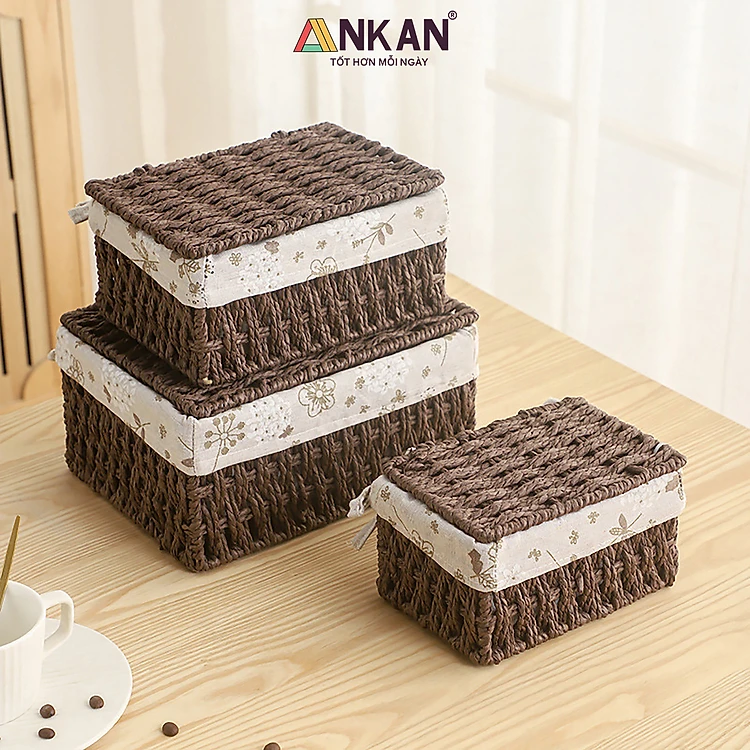 Giỏ Mây Đựng Đồ Có Nắp ANKAN, Giỏ Đựng Đồ Ăn Vặt, Phù Hợp Các Phòng Spa, Khách Sạn Và Trang Trí Trong Nhà