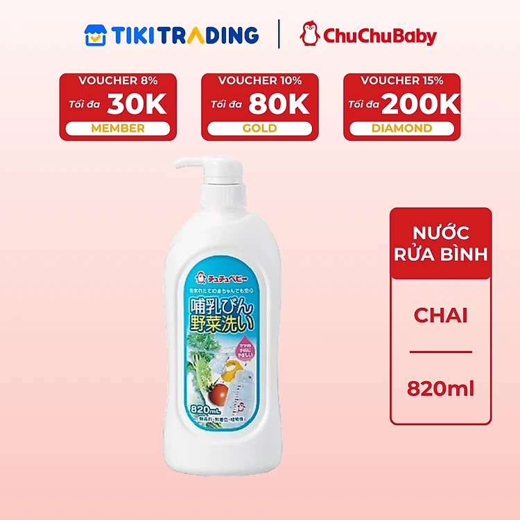 Nước rửa bình sữa, núm ty và rau củ qủa Chuchu Baby