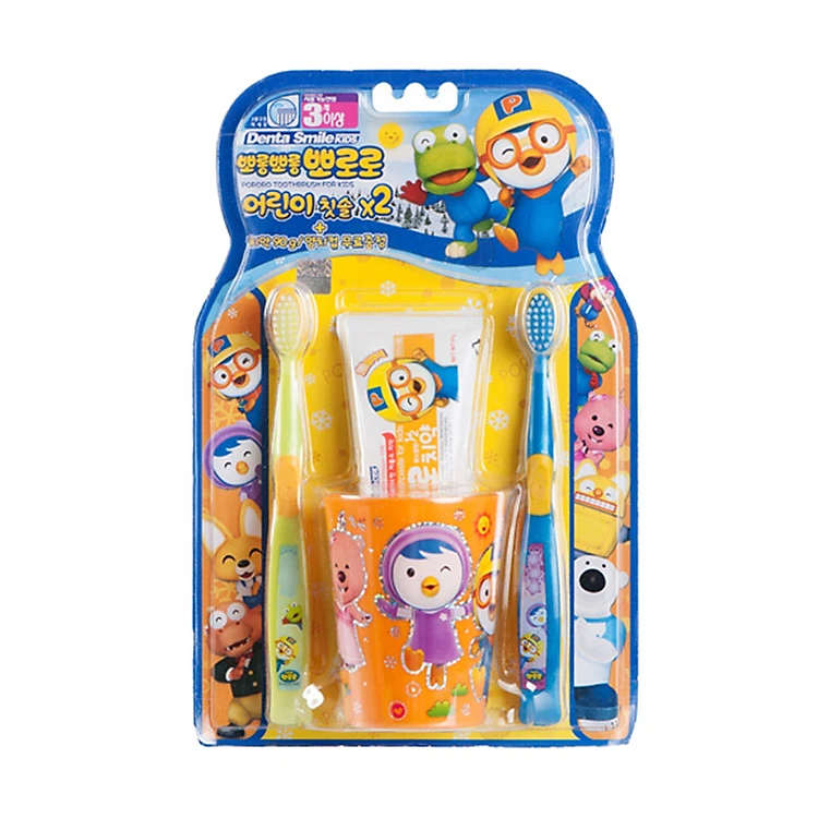 Bộ 4 bàn chải đánh răng + kem đánh răng + cốc Pororo Hàn Quốc