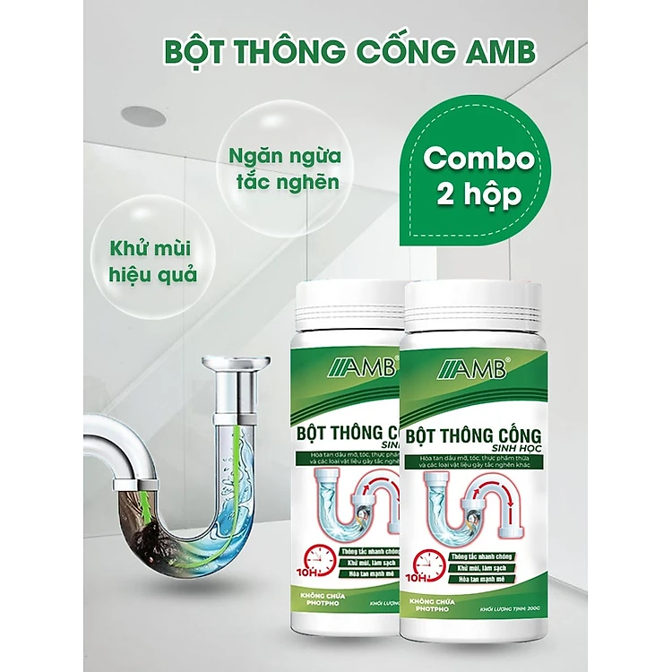 Combo 2 lọ bột thông cống AMB, bột thông bồn cầu, bồn rửa bát, tắc cống siêu mạnh, hiệu quả an toàn