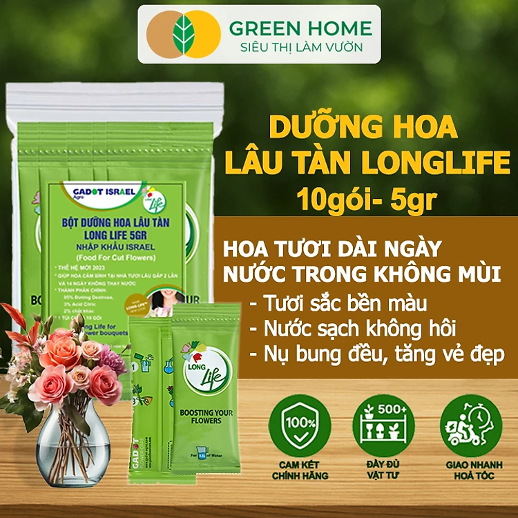 10Gói Dưỡng Hoa Tươi Lâu Greenhome, Longlife, Bón Cho Hoa Cắt Cành, Gói 5gr, Lâu Tàn, Không Hôi Nước