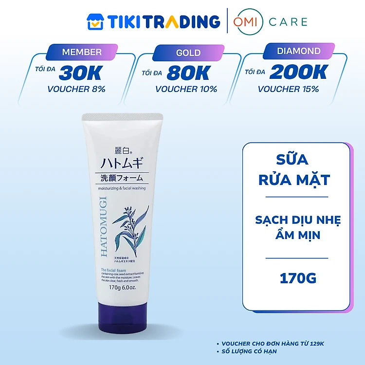 Sữa rửa mặt làm sáng da Hatomugi 170g/tuýp