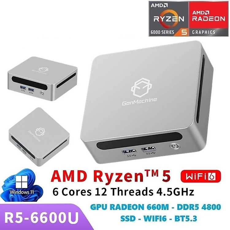 Máy Tính Mini Gaming GM6 Ryzen 5 6600H 4.5Ghz DDR5 6400 cấu hình mạnh , hỗ trợ xuất hình 4K60hz hàng nhập khẩu