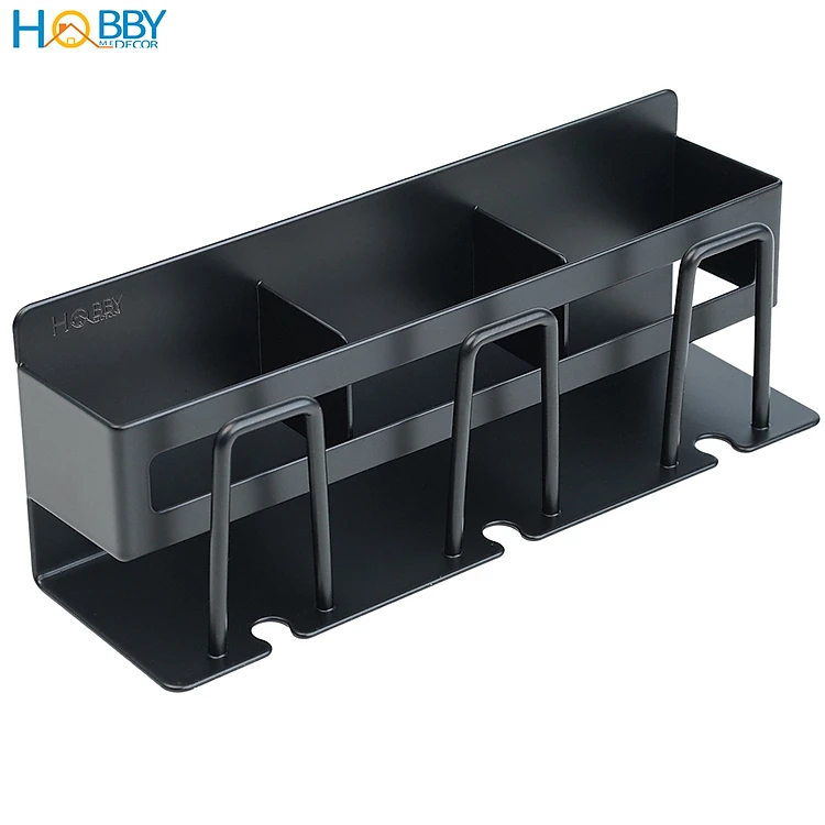 Kệ để bàn chải 3 ngăn inox 304 sơn đen dán tường Hobby home decor CD4B