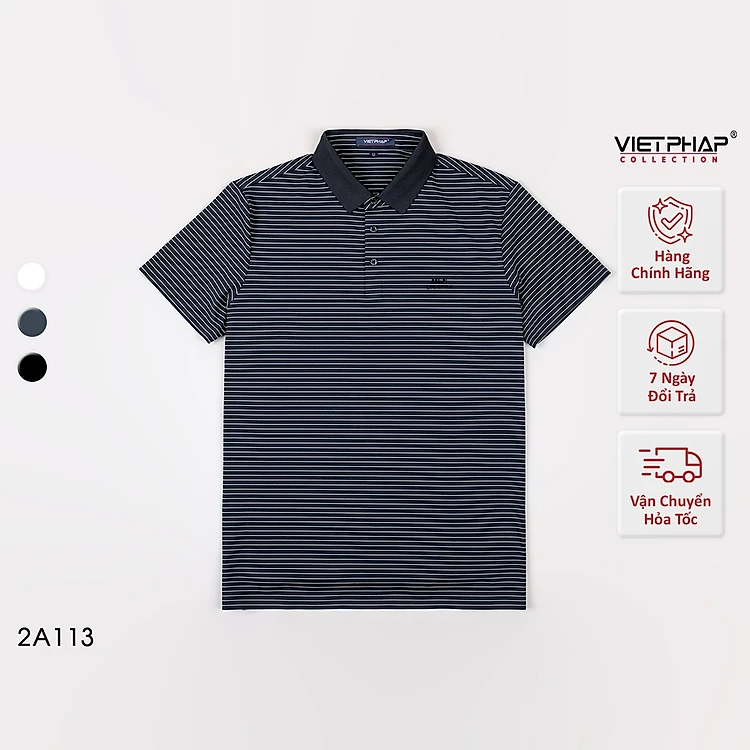 Áo Polo Nam VIỆT PHÁP Form Luxury - Thun Lụa Lạnh Sọc, lịch lãm, sang trọng 2A113