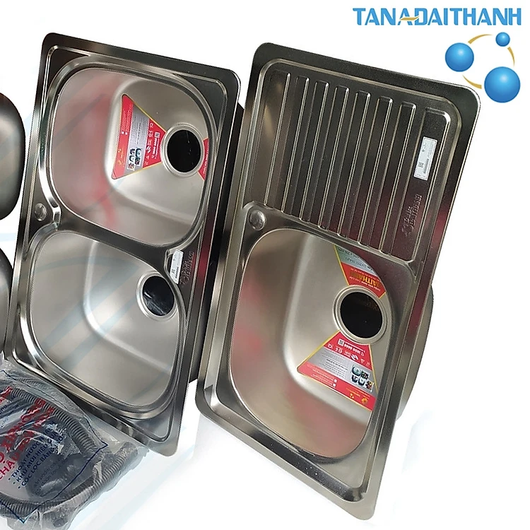 Chậu Rửa Bát Inox Chính Hãng Tân Á Đại Thành Nhiều Kích Thước - Loại 2 hộc, 1 hộc 1 cánh,..Tặng kèm bộ xi phông