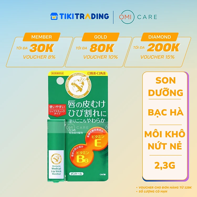 son dưỡng dành cho môi khô và nứt nẻ omi menturm 3.2 g/thỏi