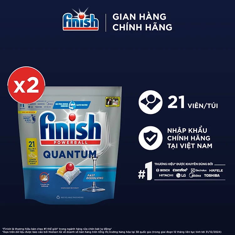 Combo 2 Gói Viên Rửa Chén Bát Finish Powerball Quantum 21 viên