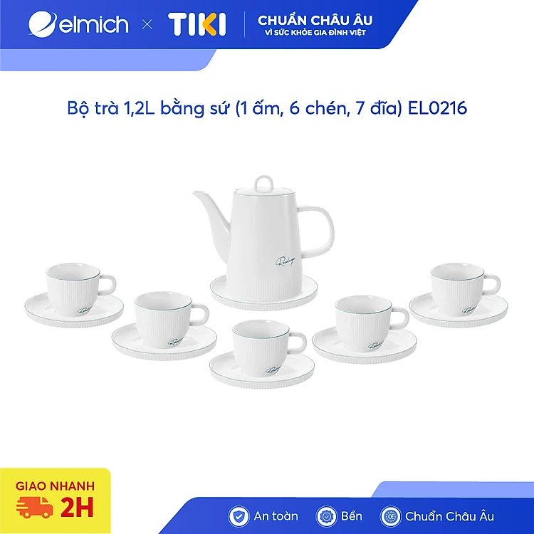 Bộ trà 1,2L bằng sứ (1 ấm, 6 chén, 7 đĩa) EL0216