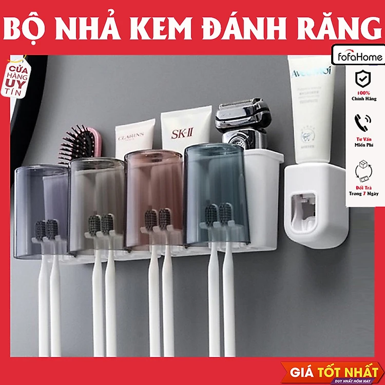 Kệ Để Bàn Chải Kem Đánh Răng 4 Cốc, Gía Để Đồ Nhà Tắm Cao Cấp Không Cần Khoan Tường (Tặng Miếng Dán)