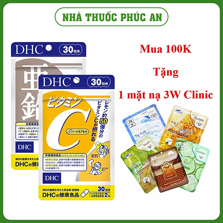 Combo viên uống DHC Kẽm (ZinC) và DHC Vitamin C 30 ngày hỗ trợ tăng sức đề kháng ngừa mụn mờ thâm