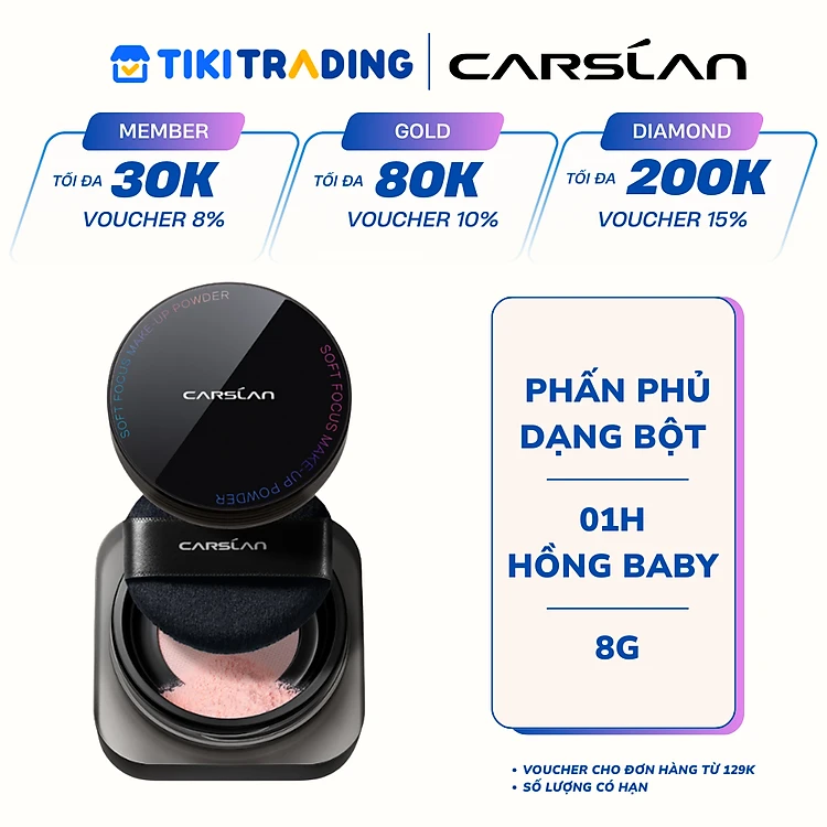 Phấn phủ CARSLAN dạng bột từ tính kiềm dầu màu đen chống nước chống mồ hôi che phủ bóng dầu cho mặt 8g