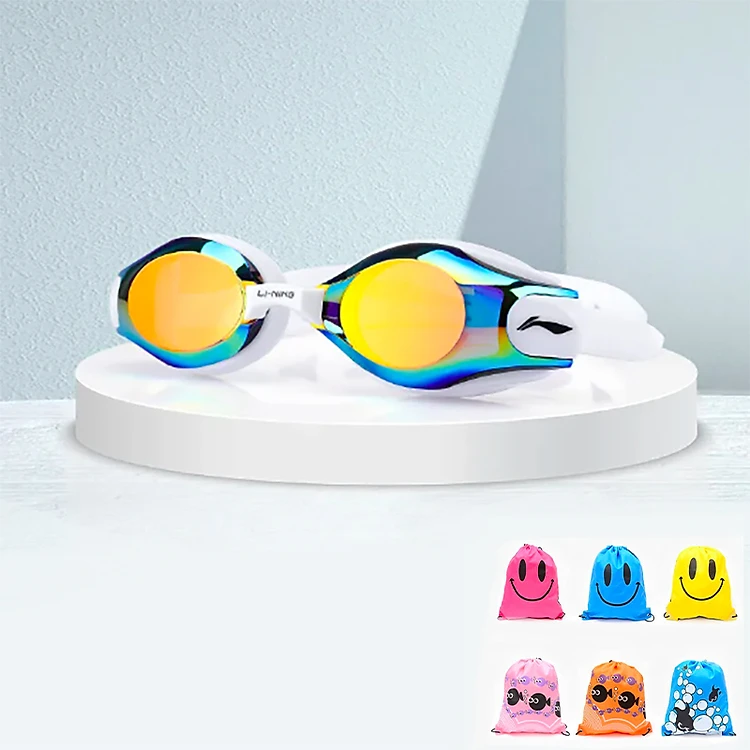 Bộ Kính bơi người lớn LI-NING tráng gương chống tia UV, chống sương mù và Túi đựng kính bơi màu ngẫu nhiên - Hàng chính hãng