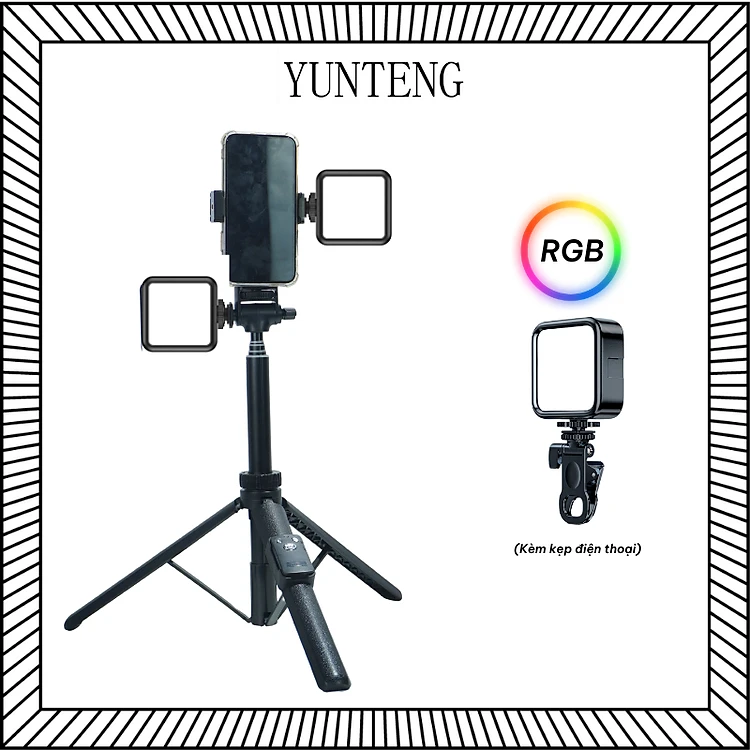 Combo Gậy Yunteng VCT 6688 và Đèn RGB - Phụ kiện điện thoại kèm đèn trợ sáng chụp ảnh, quay video - Hàng chính hãng