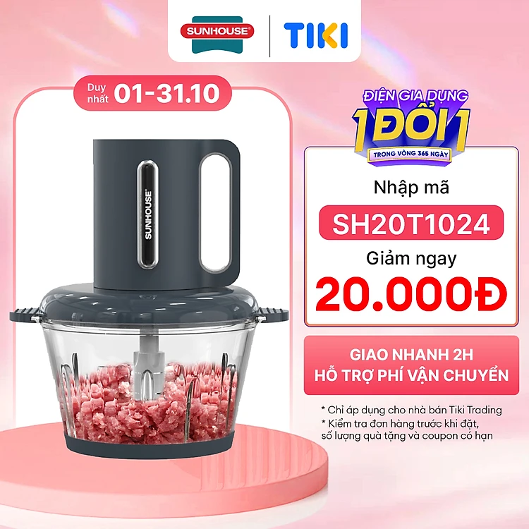Máy xay thịt SUNHOUSE SHD5403 có thiết kế gọn nhẹ, hiện đại, phù hợp mọi không gian bếp. Sản phẩm là trợ thủ đắc lực giúp bạn tối giản hóa việc nấu nướng. Với dung tích lớn, công suất mạnh mẽ và chất liệu an toàn, máy xay thịt Sunhouse là giải pháp cho vấn đề băm thịt thủ công, chuẩn bị nguyên liệu nấu ăn hay chế biến gia vị.