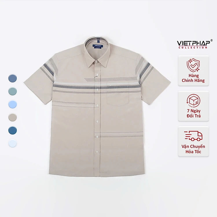 Áo Sơ Mi Nam Ngắn Tay VIỆT PHÁP Form Luxury Chất liệu Bambo In Sọc lịch lãm, sang trọng 50060