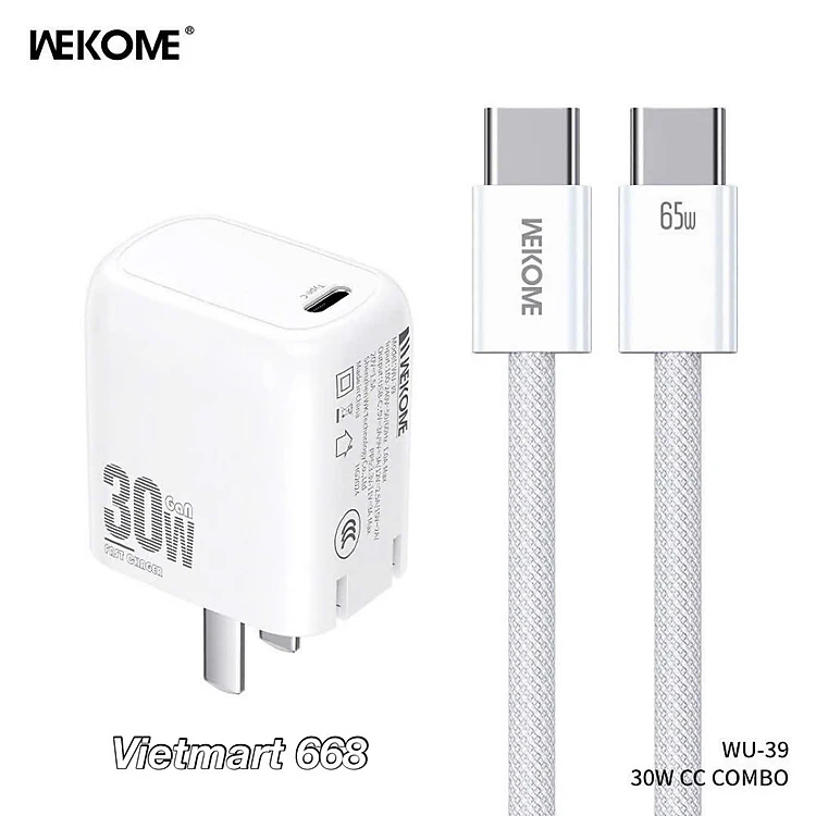 Bộ Sạc Nhanh 30W WeKome WU-39 Dành Cho iPh, SS - Kèm Cáp Sạc Bọc Dù Chắc Chắn - Hàng Chính Hãng