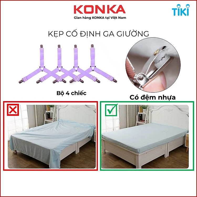 Bộ 4 kẹp ga giường drap chống xê dịch có đệm nhựa