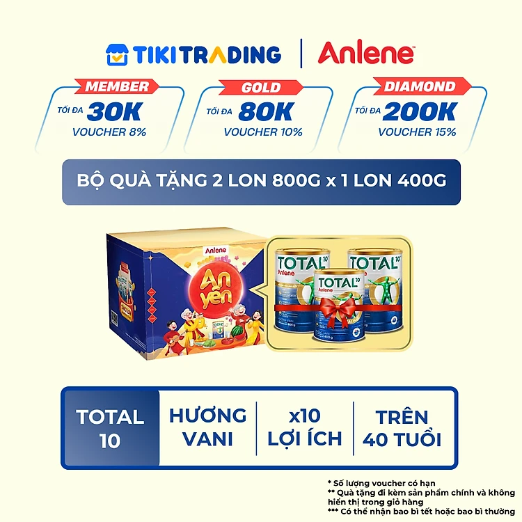 [Tặng 1 lon Anlene Total 10 400g] Bộ quà tặng combo 2 sữa bột bổ sung dinh dưỡng Anlene TOTAL 10 800g/lon