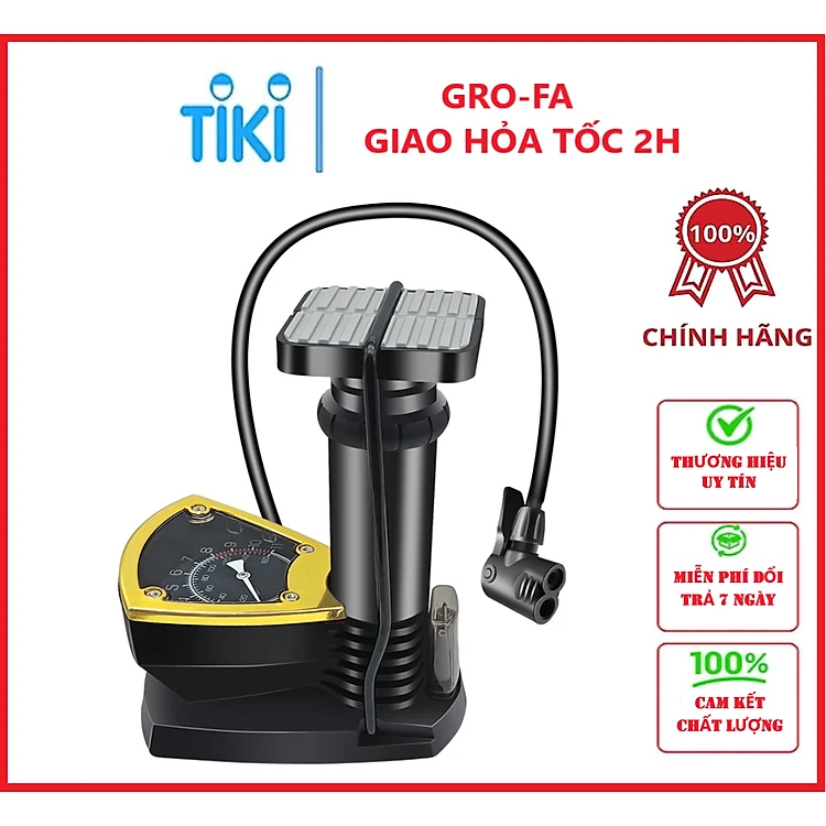 Bơm mini đạp chân - Bơm đa năng - Bơm được xe đạp, xe máy, các loại bóng, phao có đồng hồ đo áp suất - Tặng kim bơm các loại - Chính Hãng