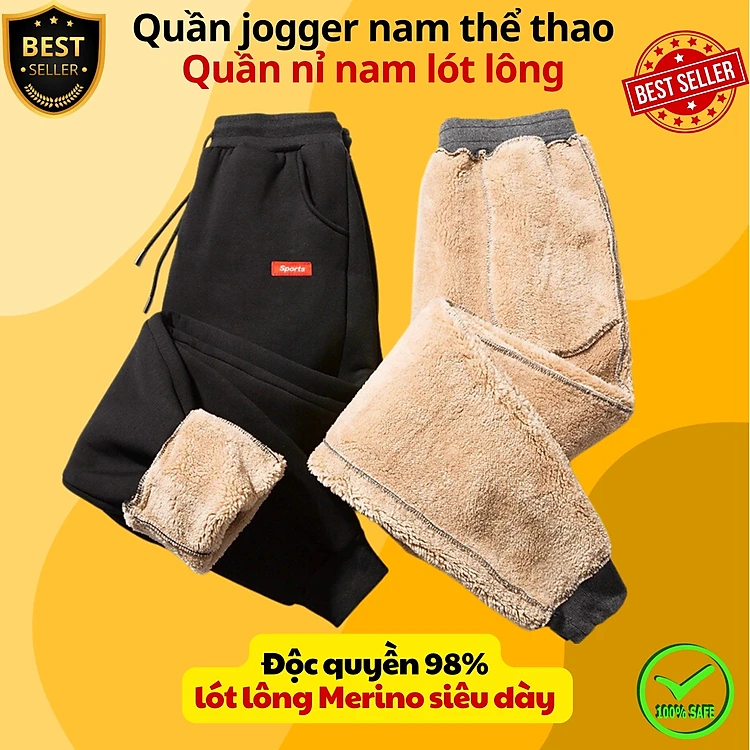 Quần gió lót lông QD2 ấm áp thời trang cho nam, Quần nỉ jogger lót lông QD1 sang trọng và dày dặn D Danido