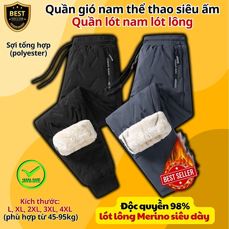 Quần gió lót lông QD2 ấm áp thời trang cho nam, Quần nỉ jogger lót lông QD1 sang trọng và dày dặn D Danido