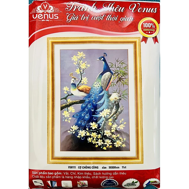 Tranh thêu chữ thập, Đôi công phu thê VS8111, kích thước 50 x 80 cm, thêu kín