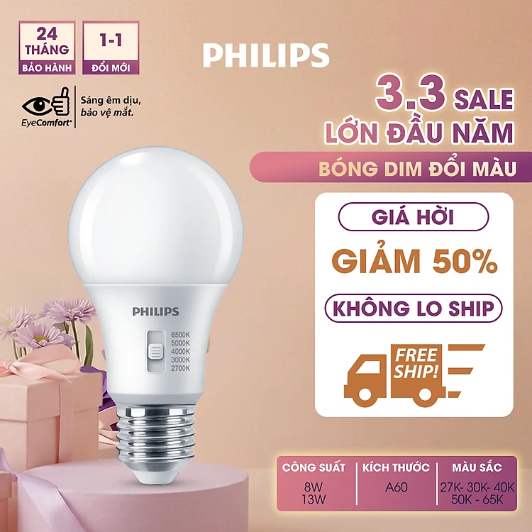 Bóng đèn Philips LED Bulb A60 DS FR DIM thay đổi nhiệt độ màu - Công suất (8W, 13W)