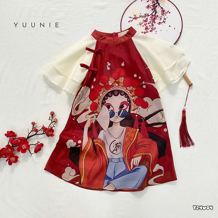 Đầm váy sườn xám áo dài cho bé gái mẫu phiền nương diện lễ tết năm mới size 9-30kg hàng thiết kế