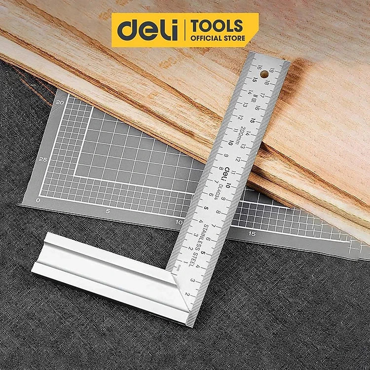 Thước Vuông Góc Kim Loại Deli Kích Thước 200mm - Sử Dụng Đo Đạc Trong Xây Dựng, Sửa Chữa Nhà Cửa - DL4034
