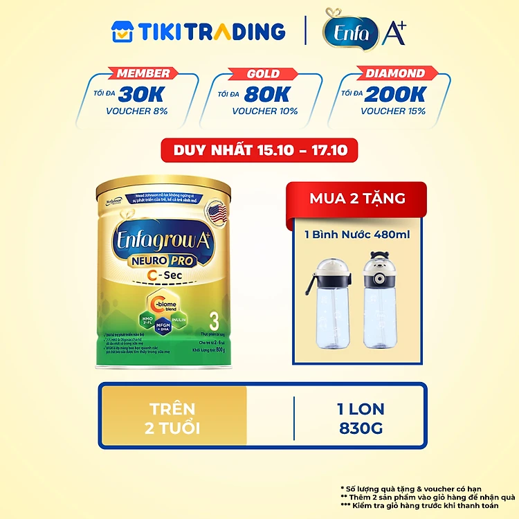 [Cho cả trẻ sinh mổ] Sữa bột Enfagrow A+ NeuroPro 3 C-Sec 800g cho trẻ từ 2-6 tuổi