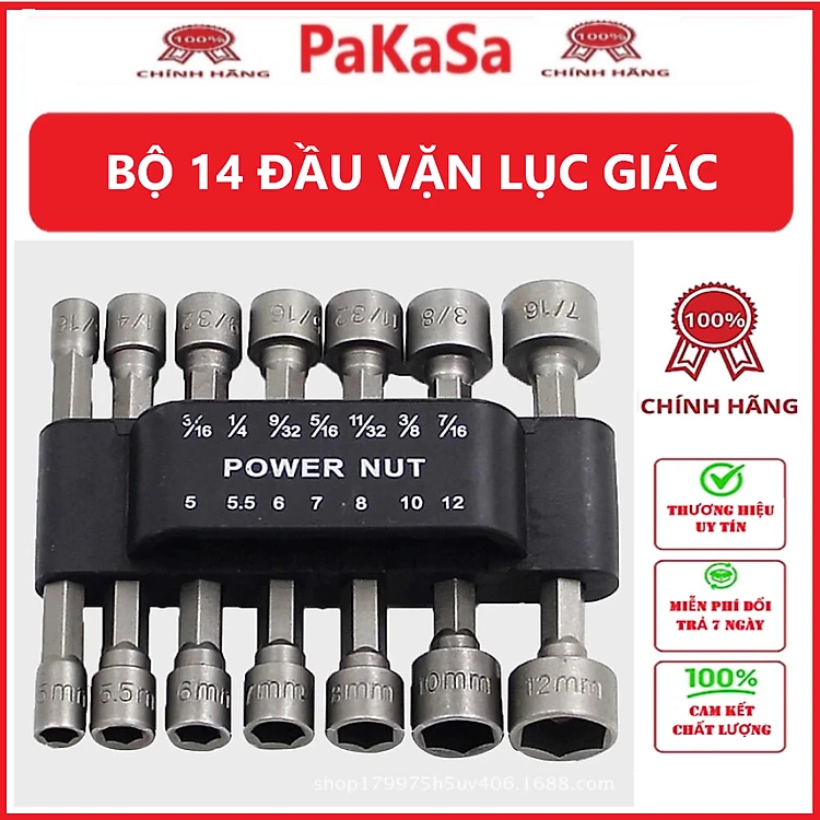 Bộ 14 đầu vặn khẩu cho khoan chuyên dụng loại 1 - 14 đầu tuýp chân lục giác - Hàng chính hãng