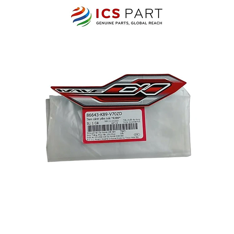 Tên sản phẩm: Tem cánh yếm trái *R389* HONDA Wave 110 (86643K89V70ZD)