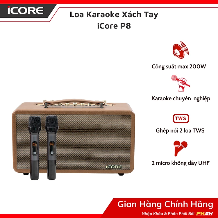 Bộ Loa Karaoke xách tay iCore P8 kèm 02 micro - Hàng Chính Hãng
