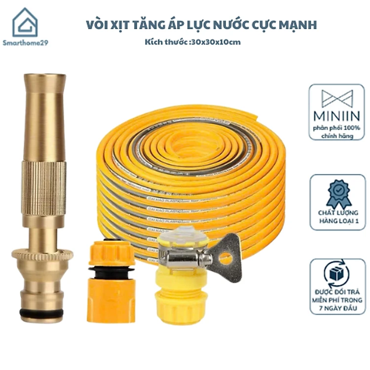 Vòi Tưới Cây, Vòi Xịt Rửa Xe Đa Năng Tăng Áp Lực Nước Cực Mạnh 10m, Lắp Vòi Nước Thông Thường (Đầu Vòi Đồng) - HÀNG CHÍNH HÃNG MINIIN