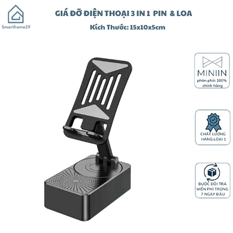 Giá Đỡ Điện Thoại 3 Trong 1 Kèm Pin Dự Phòng & Loa Bluetooth - Tiện Lợi, Dễ Dàng Mang Theo Khi Di Chuyển - HÀNG CHÍNH HÃNG MINIIN