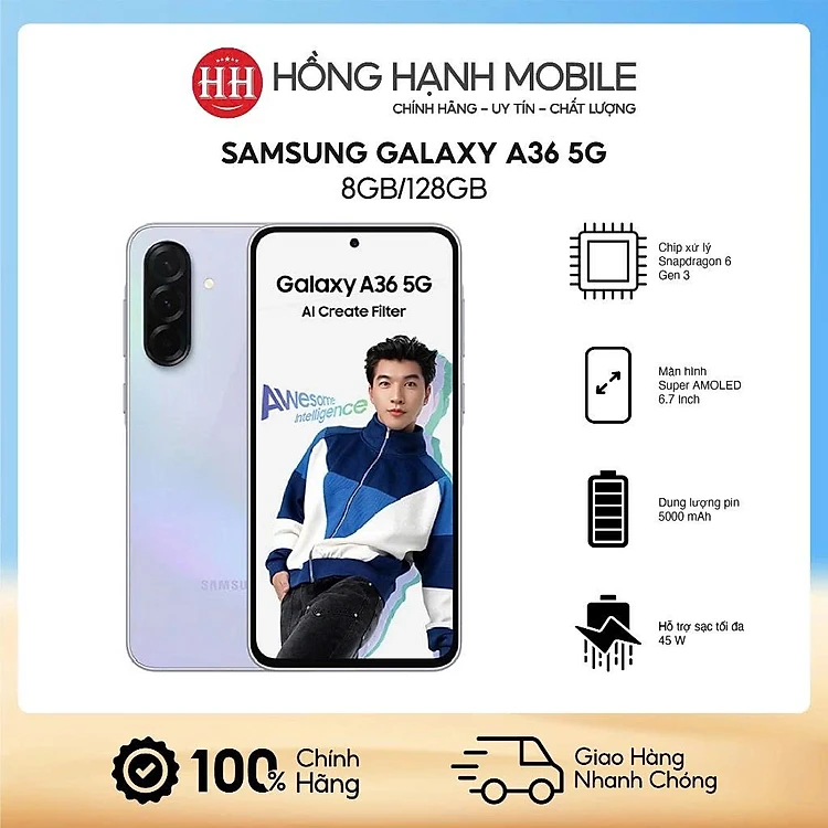 Điện Thoại Samsung Galaxy A36 5G 8GB/128GB - Hàng Chính Hãng