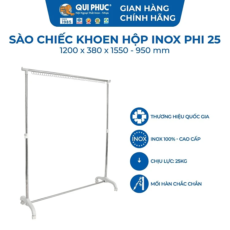 [Chính hãng Qui Phúc] Sào phơi đồ inox đơn, đôi phi 25 chịu lực tốt, có bánh xe di chuyển