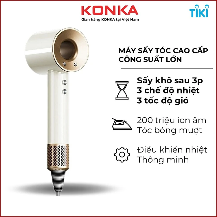 Máy sấy tóc công suất cao 1600W, máy sấy tóc ion âm, có chế độ sấy lạnh, kèm 5 đầu sấy tạo kiểu, BH 12 tháng - Hàng chính hãng