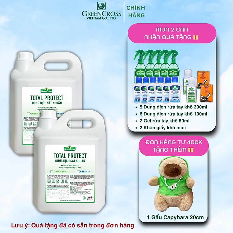 Combo Nước rửa tay kháng khuẩn vượt trội Green Cross Total Protect Can 5L Tiết kiệm