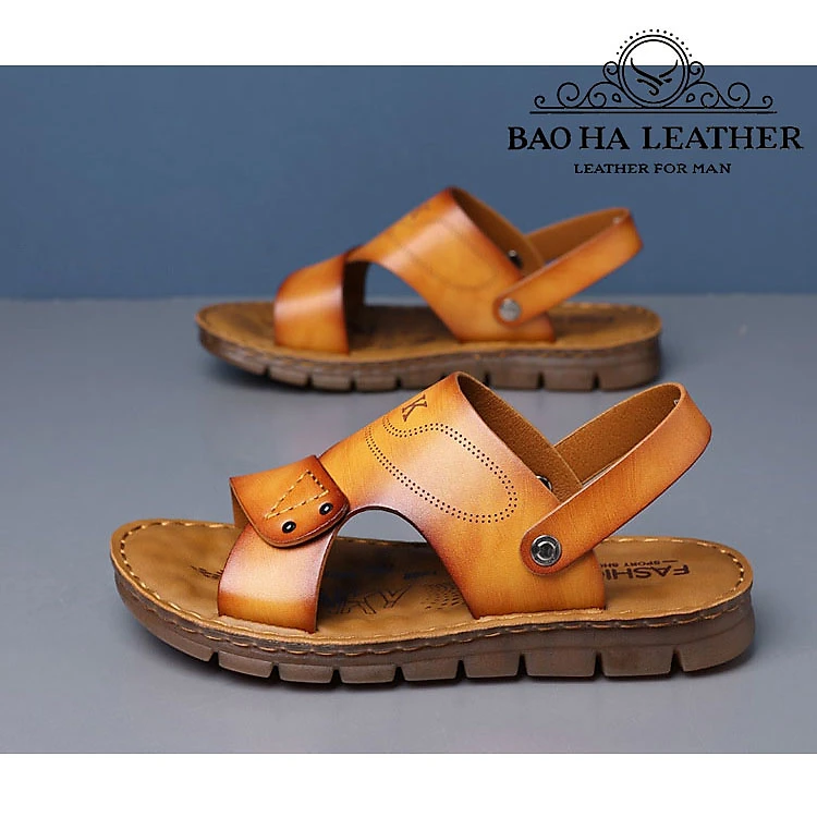 Dép nam quai ngang da bò thật cao cấp BHD8083 Dép quai hậu