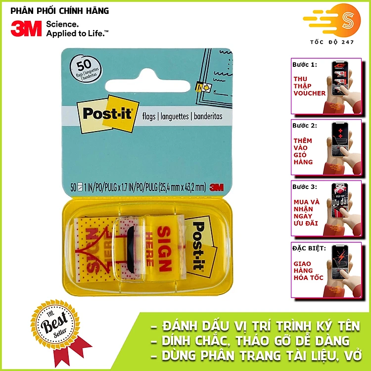 Vỉ 50 miếng noted đánh dấu trình ký Post It Sign Here 3M SB-680-9 - Đánh dấu, phân trang tập vở tài liệu
