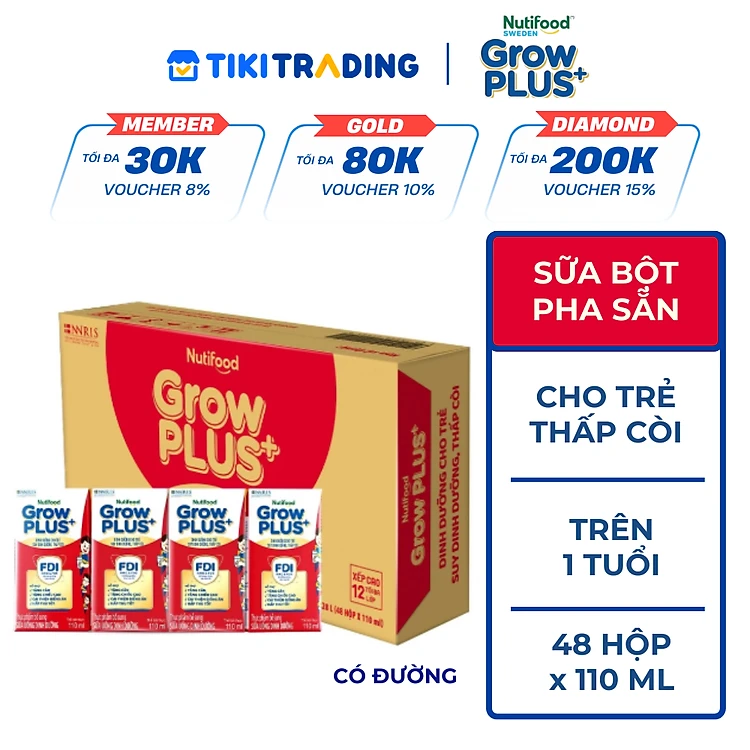 Thùng Sữa bột Pha Sẵn GrowPLUS+ Suy Dinh Dưỡng (Đỏ) - Tăng Cân, Tăng Chiều Cao (48 Hộp x 110ml) (Bao bì tùy lô hàng)