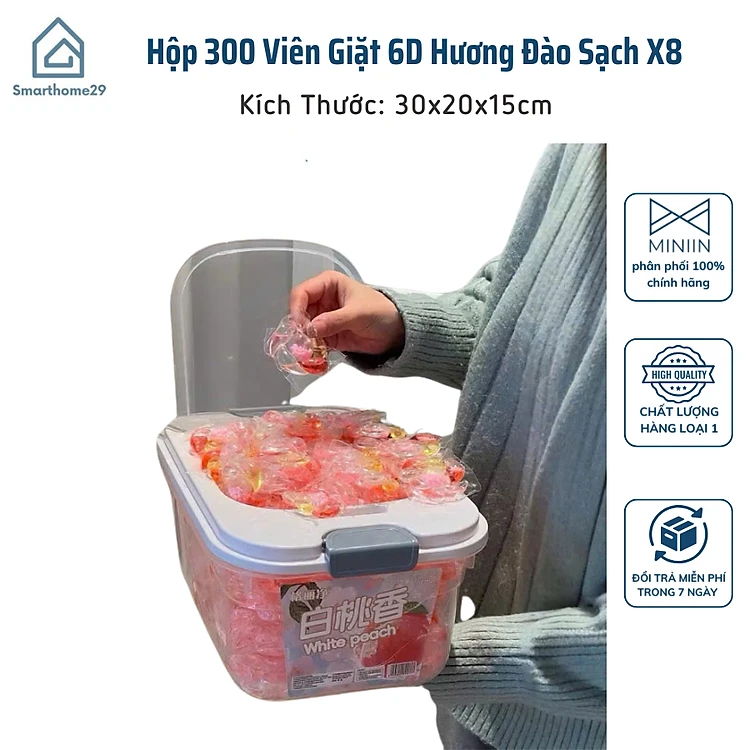 Hộp 300 Viên Giặt 6D Hương Đào, Sạch X8 Lần, Lưu Hương 24H, Siêu Tiết Kiệm Giặt Cả Tháng - HÀNG CHÍNH HÃNG MINIIN