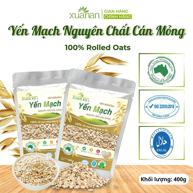 Yến Mạch Nguyên Chất Cán Mỏng Xuân An [ko đường]Túi 400G(ko quà tặng)