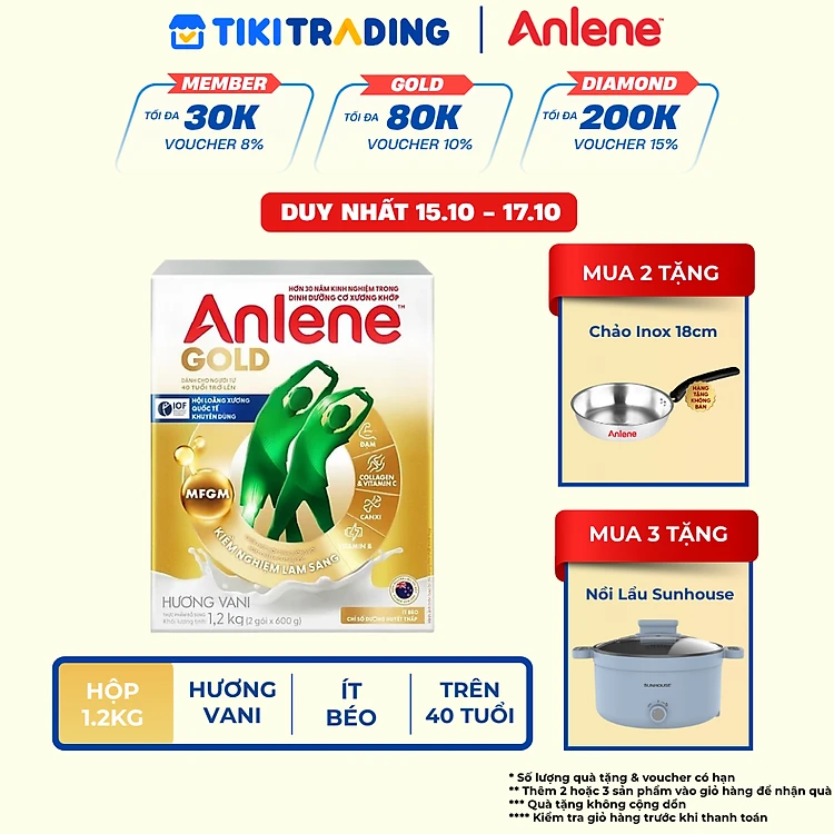Bao bì mới - Sữa Bột Anlene Gold Hương Vanilla (Hộp giấy 1200g)